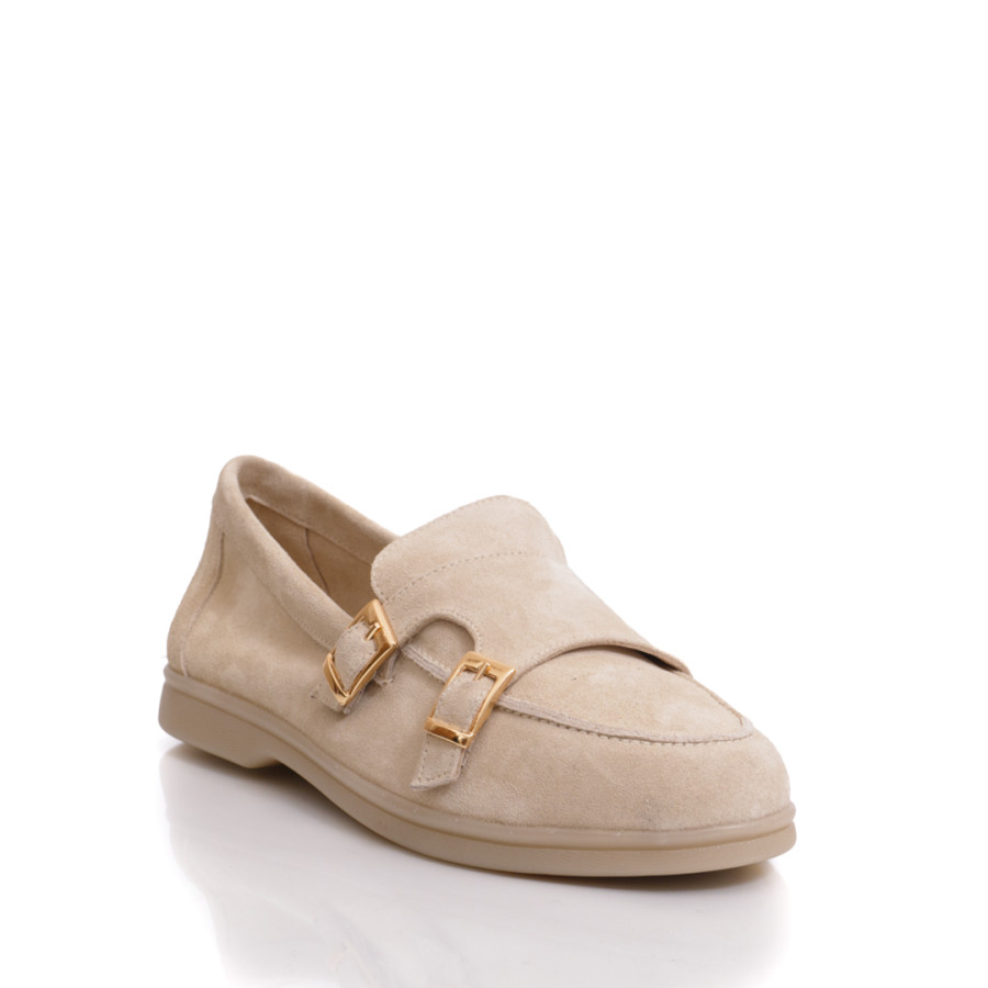 Pantof din piele intoarsa, crem.