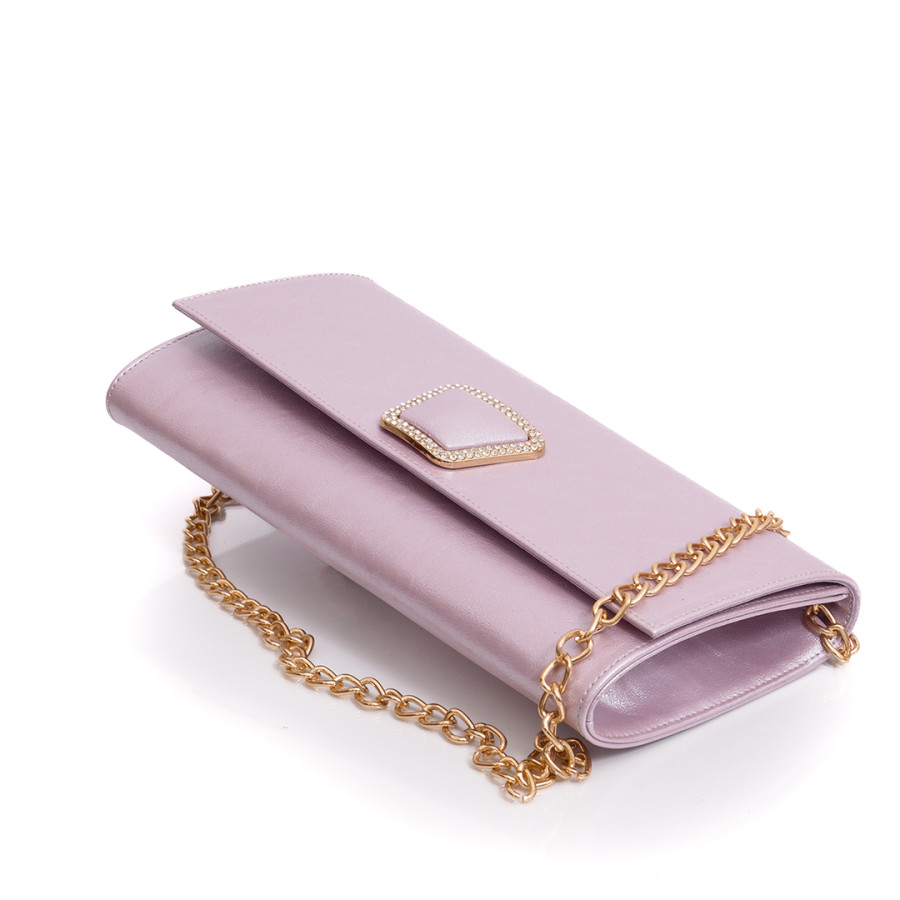 Geanta plic din piele de culoare lila cu lant.